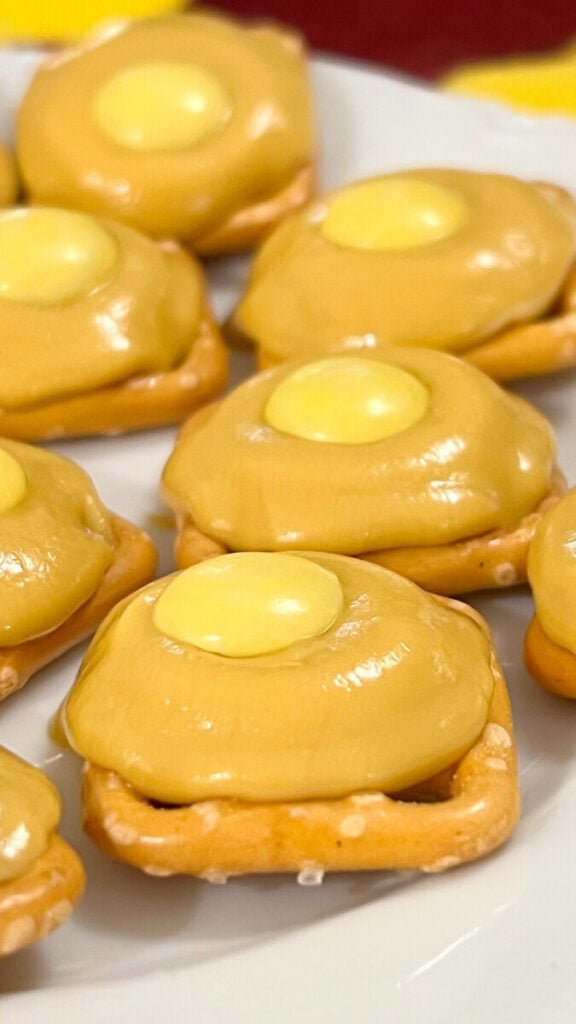 If you love sweet and salty treats that come together in minutes, these Butterbeer Kiss Pretzel Bites are going to be your new favorite snack. Made with crunchy square pretzels, creamy Hershey’s Butterbeer Kisses, and a bright yellow M&M pressed into the center, they’re simple, festive, and absolutely irresistible.