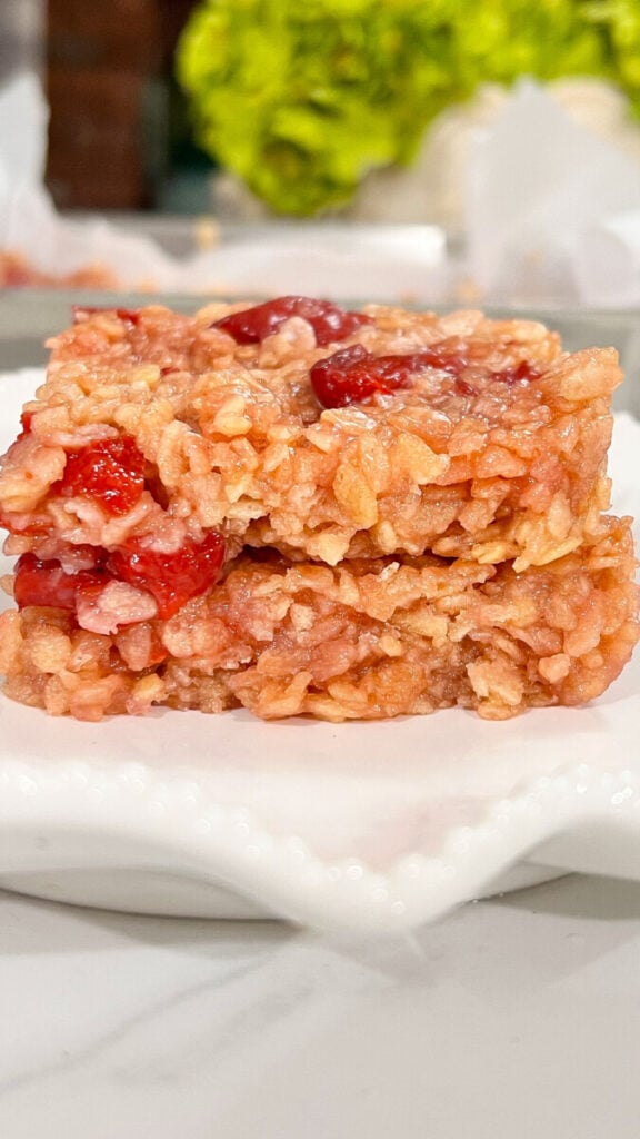 They’re soft, gooey, and packed with sweet cherry flavor. Classic Rice Krispy treats are taken to the next level by mixing in cherry pie filling, creating a dessert that tastes like a fun mash-up of cherry pie and marshmallow cereal bars.