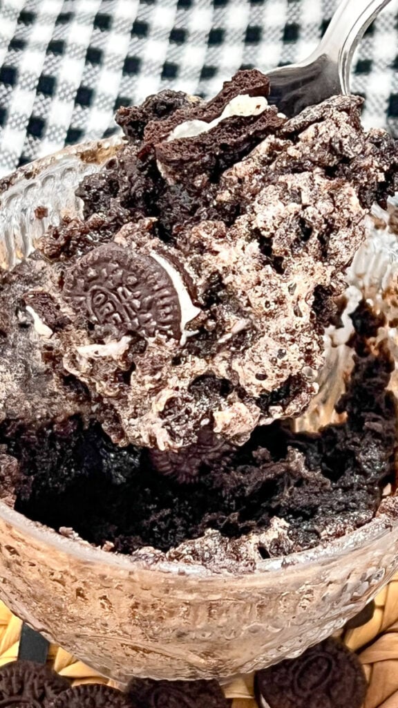It’s soft, chocolatey, rich, and made right in the microwave in just a few minutes. Best of all? You only need 2 main ingredients: Oreos and milk!