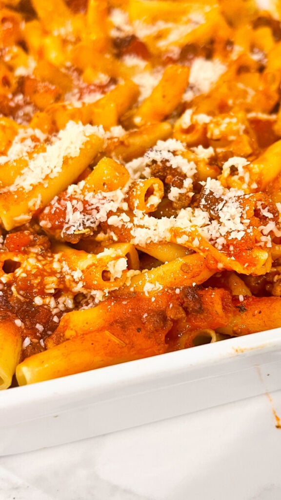If you love cozy pasta dinners like this baked ziti, be sure to check out some of my other comforting family meals, like this creamy chicken pasta recipe, my easy weeknight chili recipe, and how to make homemade pizza dough from scratch.