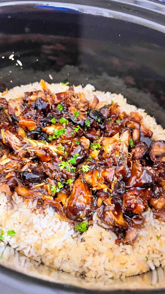 This Crock Pot Bourbon Chicken and Rice is everything we love about slow cooker meals: low effort, full of flavor, and endlessly comforting.