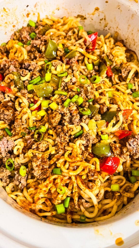 This loaded slow cooker beef ramen is rich, savory, and packed with flavor from tender ground beef, garlic, soy sauce, and a slightly sweet, comforting broth. Everything cooks low and slow, then gets finished with ramen noodles for the easiest, coziest dinner.