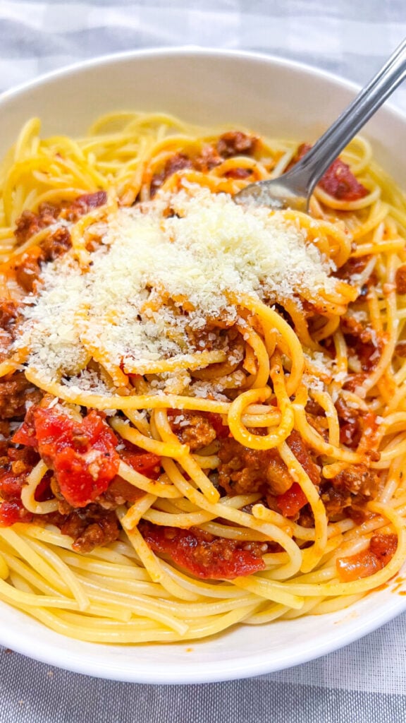This recipe uses ground beef (or a mix of beef and Italian sausage, if you’d like) simmered with tomatoes, garlic, onion, and Italian herbs until the flavors meld together into the perfect sauce. Toss it with spaghetti, top with freshly grated Parmesan, and you’ve got a meal everyone will love.