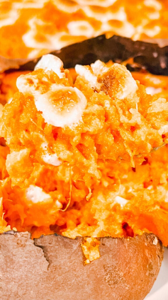 - Make it ahead – Assemble the potatoes up to the second bake, then refrigerate. When ready to serve, bake until warmed through and marshmallows are golden.