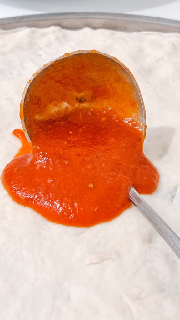 This sauce is bursting with the classic Italian flavors we all love—garlic, oregano, basil, and a hint of sweetness to balance the tomatoes. It’s thick, rich, and clings perfectly to your dough, creating that authentic pizzeria taste right at home.
