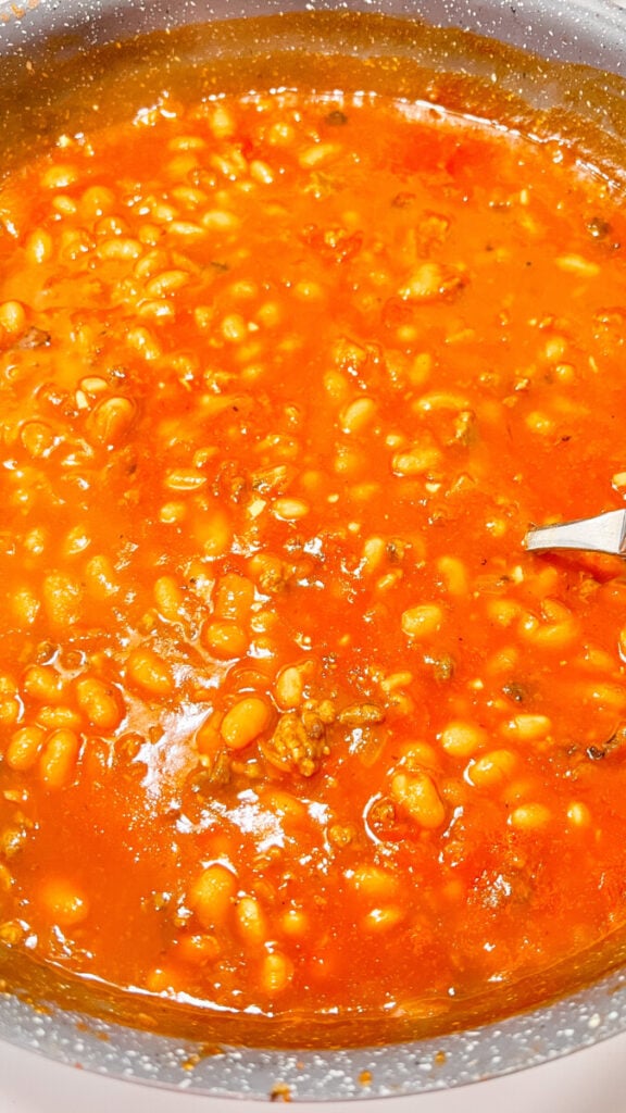 Packed with smoky flavor, tender beans, ground beef, bacon, and a rich, tangy-sweet sauce, this stovetop recipe comes together in under 30 minutes.